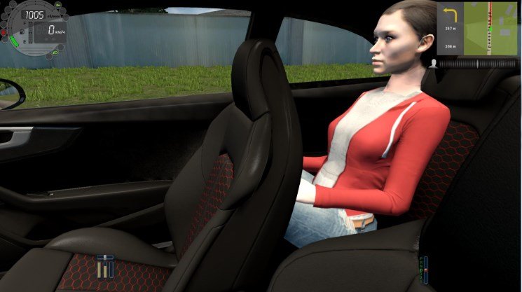Автомобиль также имеет индикацию КПП, работают все лампочки индикации, все стрелки, хорошо настроена физика и т.д.