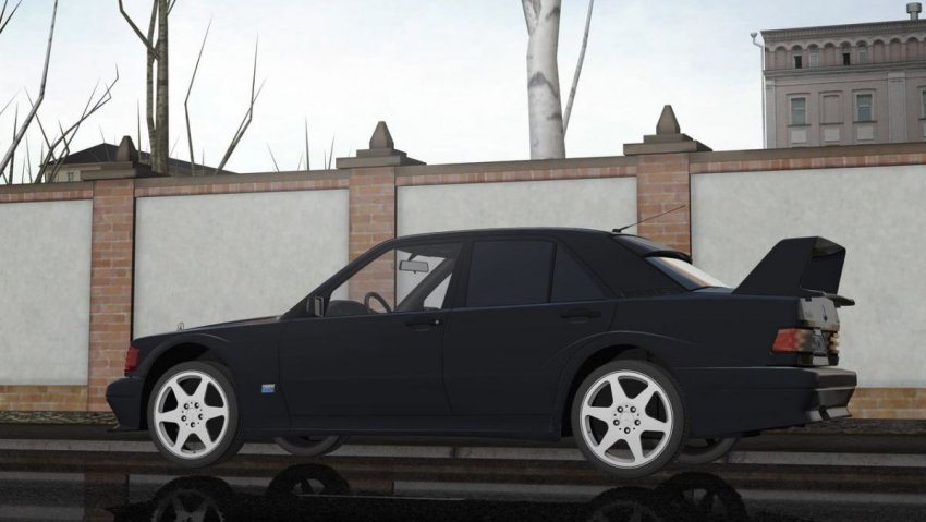 В моде Mercedes-Benz 190 E 2.5-16 Evolution II присутствуют 3 экстры для тонировки стекол (варианты: все стекла, только задние либо все кроме лобового). Текстуры запечены, сама модель выглядит хорошо. Спидометр отображает правильную скорость.