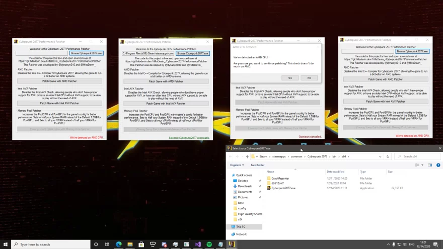 Владельцы старых процессоров от AMD столкнулись с тем, что их железо оказалось несовместимо с технологиями SMT и AVX, из-за чего уровень ФПС в Киберпанке был настолько низким, что играть было попросту невозможно. Исправить данное упущение разработчиков призвана фанатская утилита под названием Cyberpunk 2077 All-in-One Performance, которая фиксит большинство известных проблем, связанных со старыми процессорами.