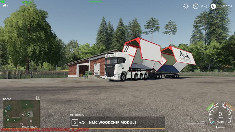 Транспортный пакет NMC Woodchip Transport Pack предназначен для использования с версией конфигурации короткого шасси NMC Griffin. Установка наиболее распространена в скандинавском регионе. Этот набор включает в себя два магазина, 1х модуль и 1х трейлер. Этот пакет в основном предназначен для транспортировки щепы, но с возможностью открывать дверь вручную, вы можете перевозить все, что поместится в него. Как в модуле, так и в прицепе есть натяжные ремни, поэтому при необходимости вы можете пристегнуть груз. Вы также можете перевезти свой урожай любой культуры. С общей емкостью 115 000 литров с присоединенным модулем и прицепом, вы можете полностью опустошить силос на ферме в кратчайшие сроки.