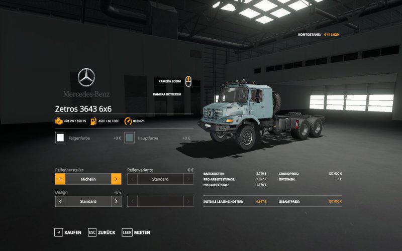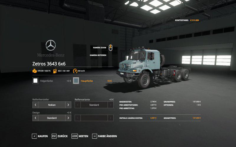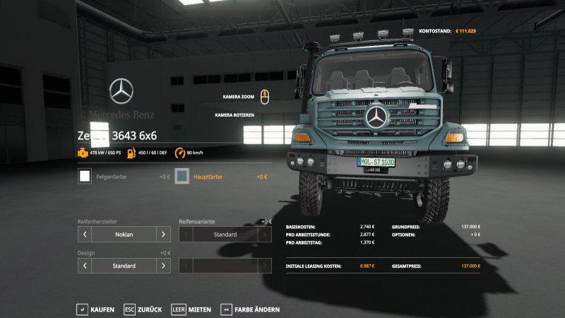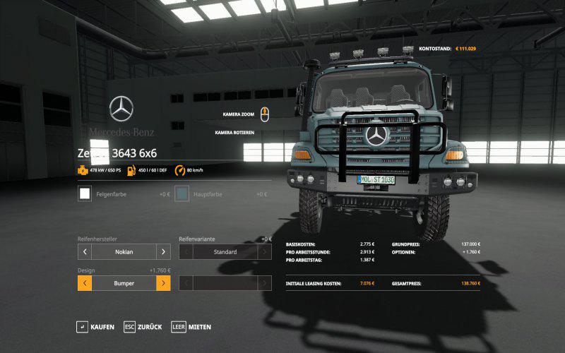 Mercedes Zetros 3643 6×6 для Farming Simulator 19