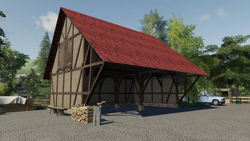 Деревянный сарай с чердаком для Farming Simulator 19