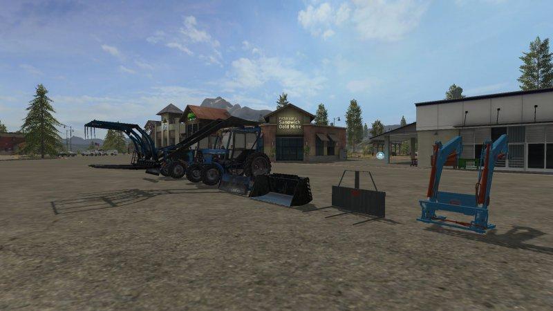 - Комплект оборудования для тракторов: бульдозерный отвал, поворотный бульдозер (КО-4), ковш, тюк вил, навесной погрузчик, вилы для противовеса СНУ-550 (ведро с песком).