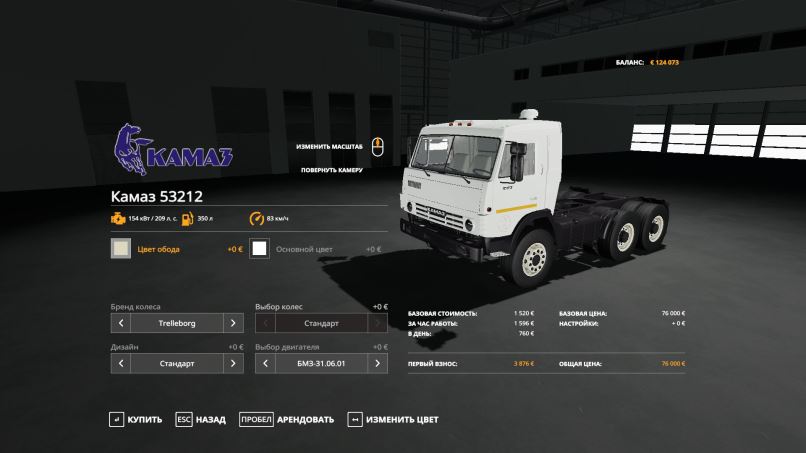 Характеристики мода "КамАЗ-5410 с полуприцепом" для FS19: