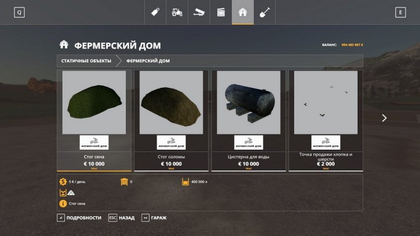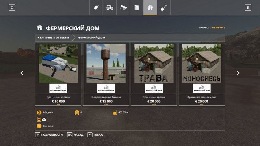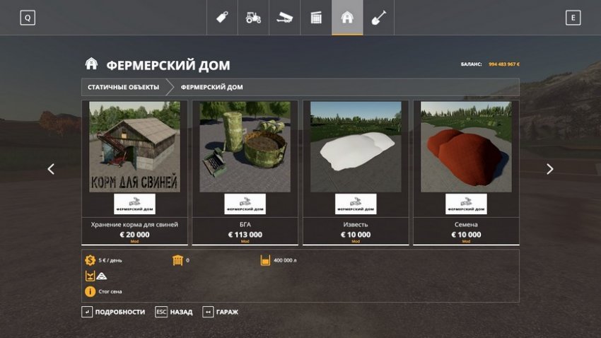 В пак Фермерский дом для ФС 2019 входят: