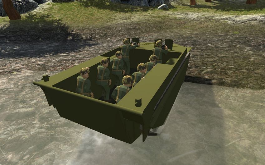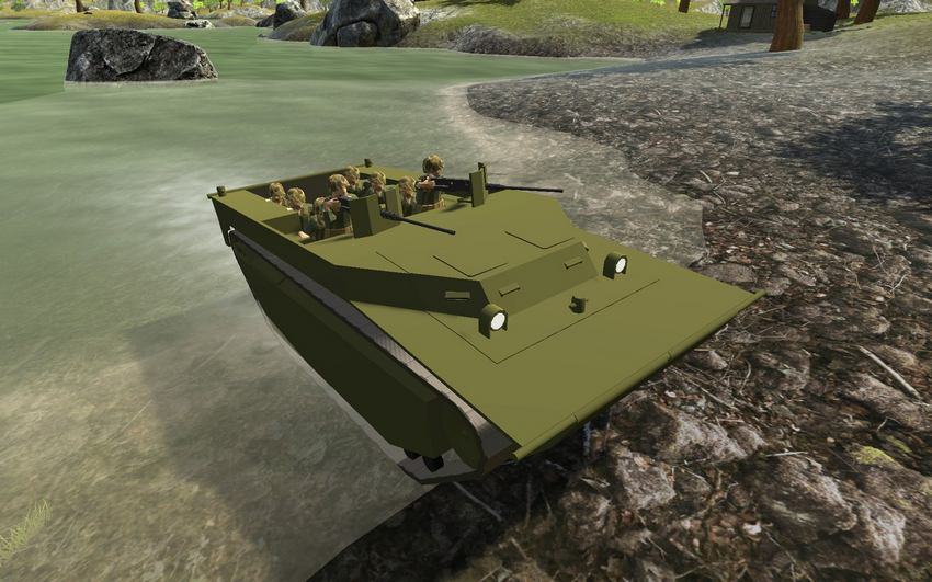 LVT-4: Грузовой корабль-амфибия, используемый Соединенными Штатами во время Второй мировой войны. Он плавает, перевозит шесть пассажиров и оснащен двумя пулеметами калибра M2 .50. Он может заменить любое наземное или водное транспортное средство.