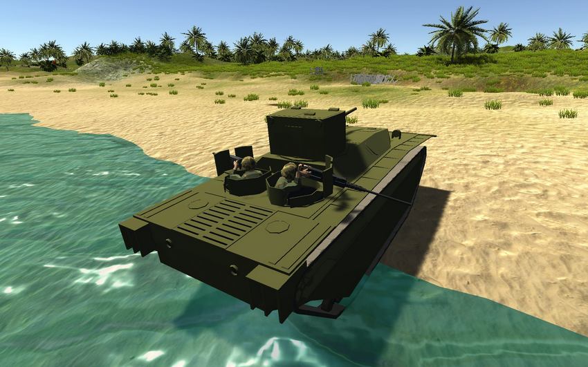 LVT (A) -1: LVT адаптирован в амфибийный танк с 37-мм пушкой и коаксиальным пулеметом калибра .30 в башне, взятой у M3 Stuart, и двумя пулеметчиками, сидящими на корме. У них должно быть .30 cals but w/e.