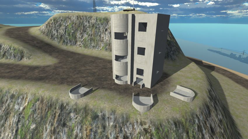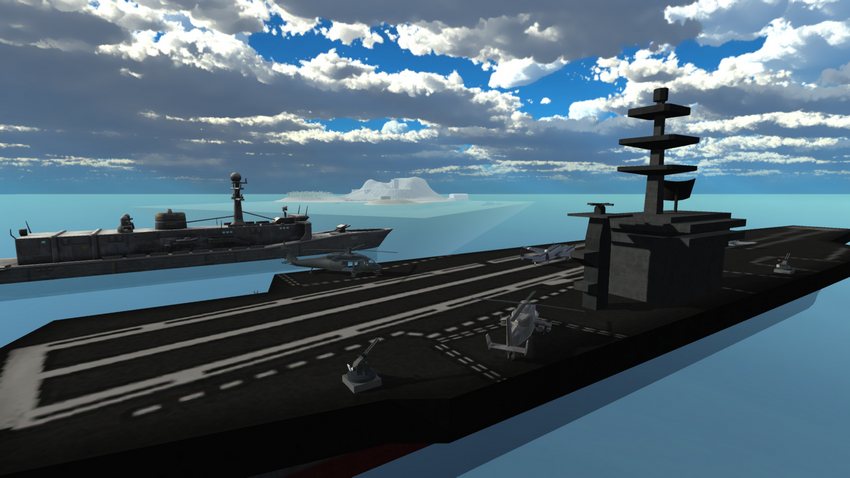 - одна современная, со структурами на острове старыми и ржавыми, и команды, запускающие водную атаку с двух противоположных носителей;