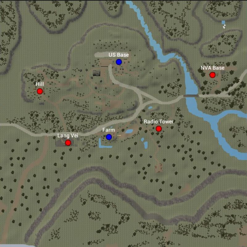 На карте морские пехотинцы США расположены в 2 контрольных точках в центре карты, в то время как NVA имеют контроль над 2 контрольными точками с западной и восточной стороны. Заполненные деревнями и не такими густыми лесами, НВА и США борются за контроль над всей картой, используя наземные и воздушные транспортные средства.