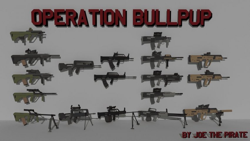В пак входят следующие огнестрельное оружие: австрийская винтовка AUS 88, AUS 88A3 (с оптикой Leopold, рельсовой рукояткой и улучшенной вспышкой), тактическая винтовка AUS 88A3, автоматическая винтовка AUS 88 HBAR, эффективный пистолет-пулемет AUS 99 PARA, высокоэффективная на более близких дистанциях винтовка MAS-78 F1, полуавтоматическая MAS-78 F1 Semi, LSA90 с интегрированной оптикой, LSA90A3 с оптикой ACOG, LSA90GL (для оснащения легких транспортных средств или пехотной группы), легкое вспомогательное оружие LSA91 LSW, подкарбина LSA29 PDW, израильский буллпап X48 Dinorah, карабинный вариант винтовки X48C Dinorah, винтовка с меткой стрелка X48M Dinorah, китайский bullpup B'QIĀNG 99, легкий пулемет JIQIĀNG 99, винтовка для ближнего боя MǍQIĀNG 99.