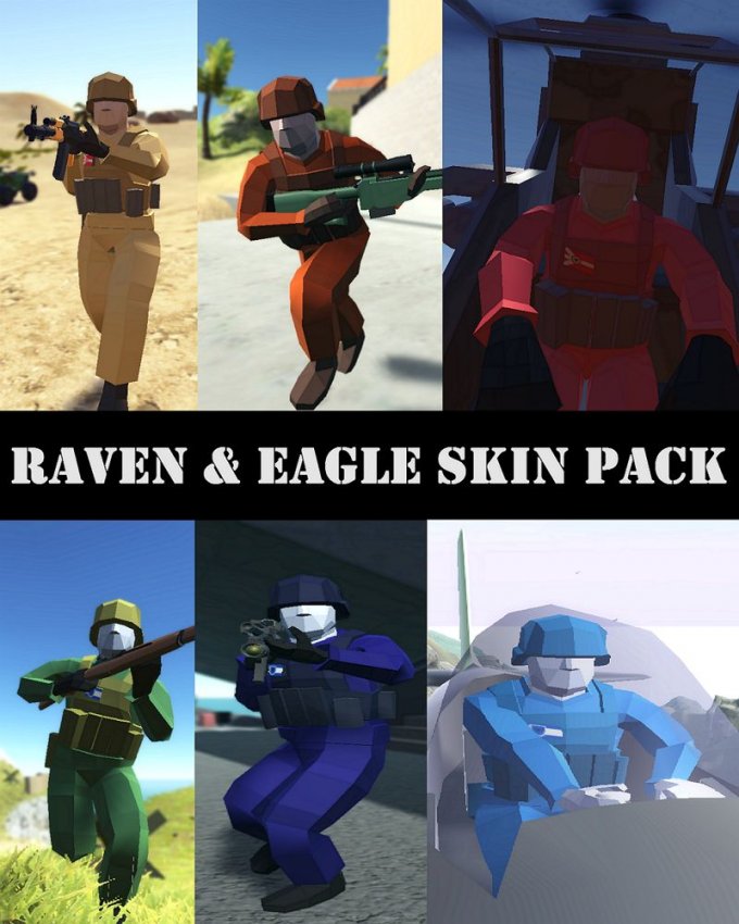 Скин Raven & Eagle Skin Pack для Ravenfield основан на типе ответвлений Орлов и Воронов (армия, флот и авиация). Также добавлено несколько патчей для скинов для уникальности.