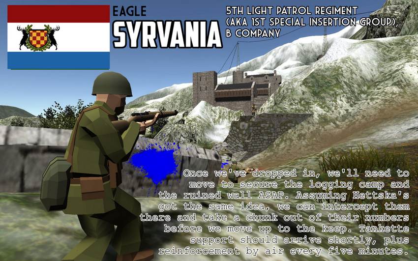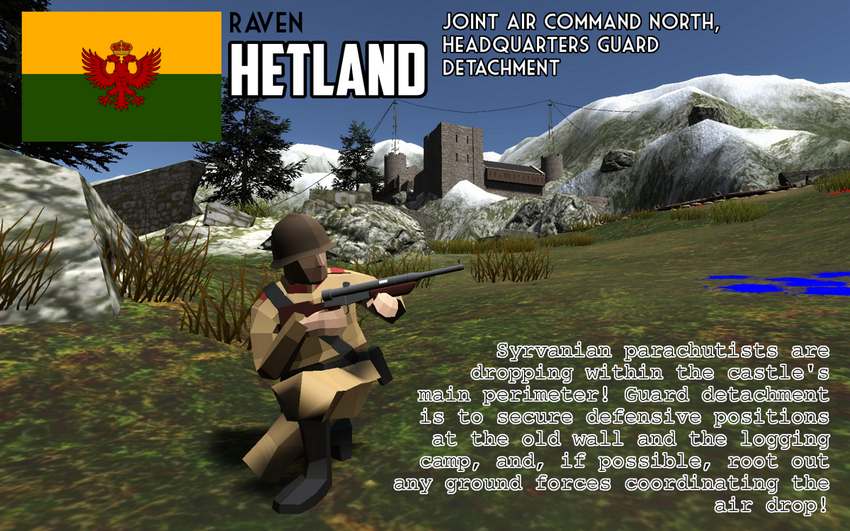 С началом замедления продвижения Сирвании на юге и из-за погодных условий на севере, Hettic Home Armyможет теперь начать перегруппировку для полного контрнаступления на восточной границе региона Лиерсог. Это стало возможным благодаря Hettic Royal Flying Service, которая провела ряд решительных воздушных вторжений против сил ирландской логистики и командных элементов. В свою очередь, эти операции были осуществлены благодаря информационному бюро Air Service, которое сумело использовать организационные недостатки авиационного корпуса в Сирвании и ускользнуть от своих собственных разведывательных усилий. Чтобы эффективно организовать наиболее важный компонент защиты Гетланда, эти две организации обосновались в скромных руинах в горах. Здесь они были изолированы от боевых действий, но смогли наблюдать за войной с отдаленной точки замка Dazhik.